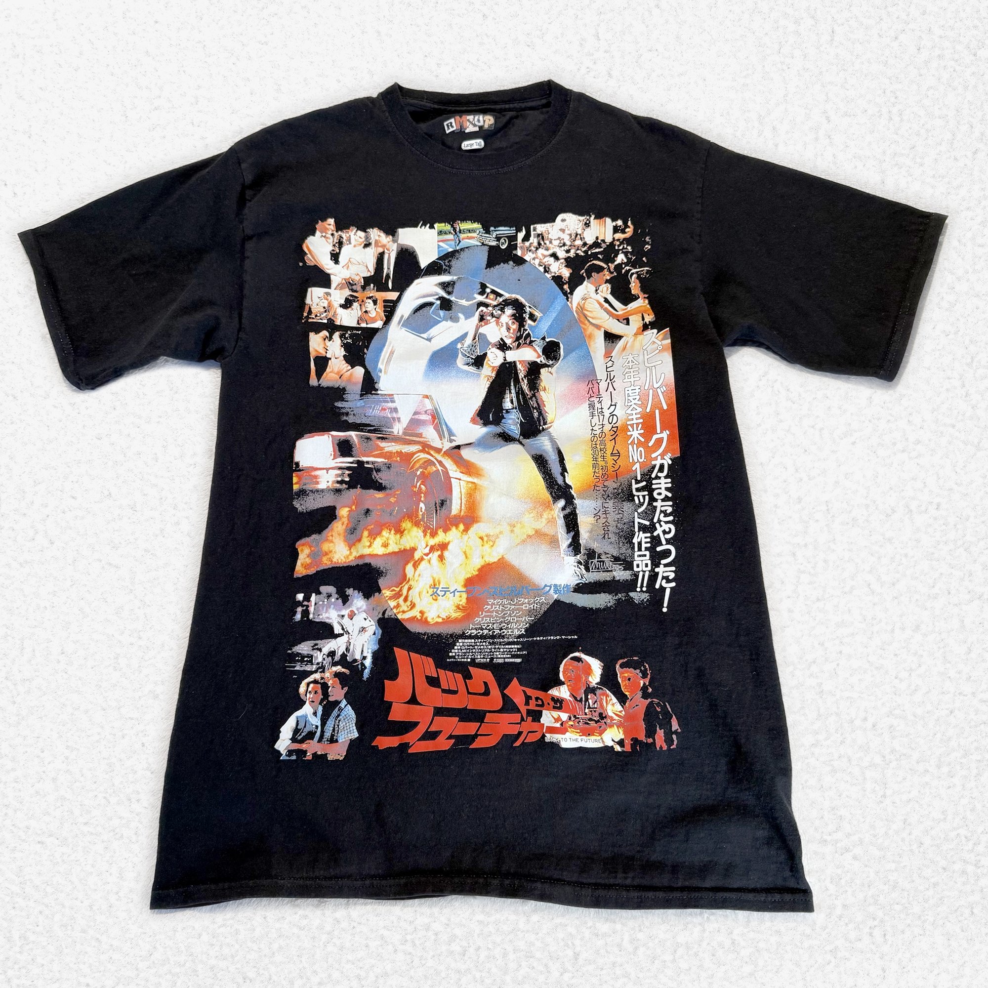 This one-of-one tee features the Back to the Future Japanese poster, blazing with fire trails, lightning bolts, and pure retro energy. The black base is untouched - clean and bold - like the DeLorean just peeled out of a midnight drop-off in 1985 Tokyo.