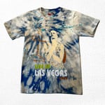 The one-of-one tee celebrates the legendary performer’s 2022 Las Vegas show with a radiant portrait graphic accented by gold shimmer and bold lettering. Printed on a blue-and-white tie-dye wash with splatter details, this shirt captures both the glamour and timeless energy of her stage presence.